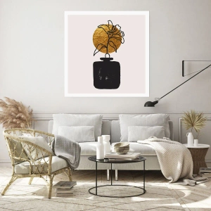 Poster - Eine Zeichnung einer Blume in einer Vase vor einem goldenen Kreishintergrund - 100x70cm - Schönheit ist Gold wert - Moderne Wanddekoration für Wohnzimmer und Schlafzimmer ARTTOR