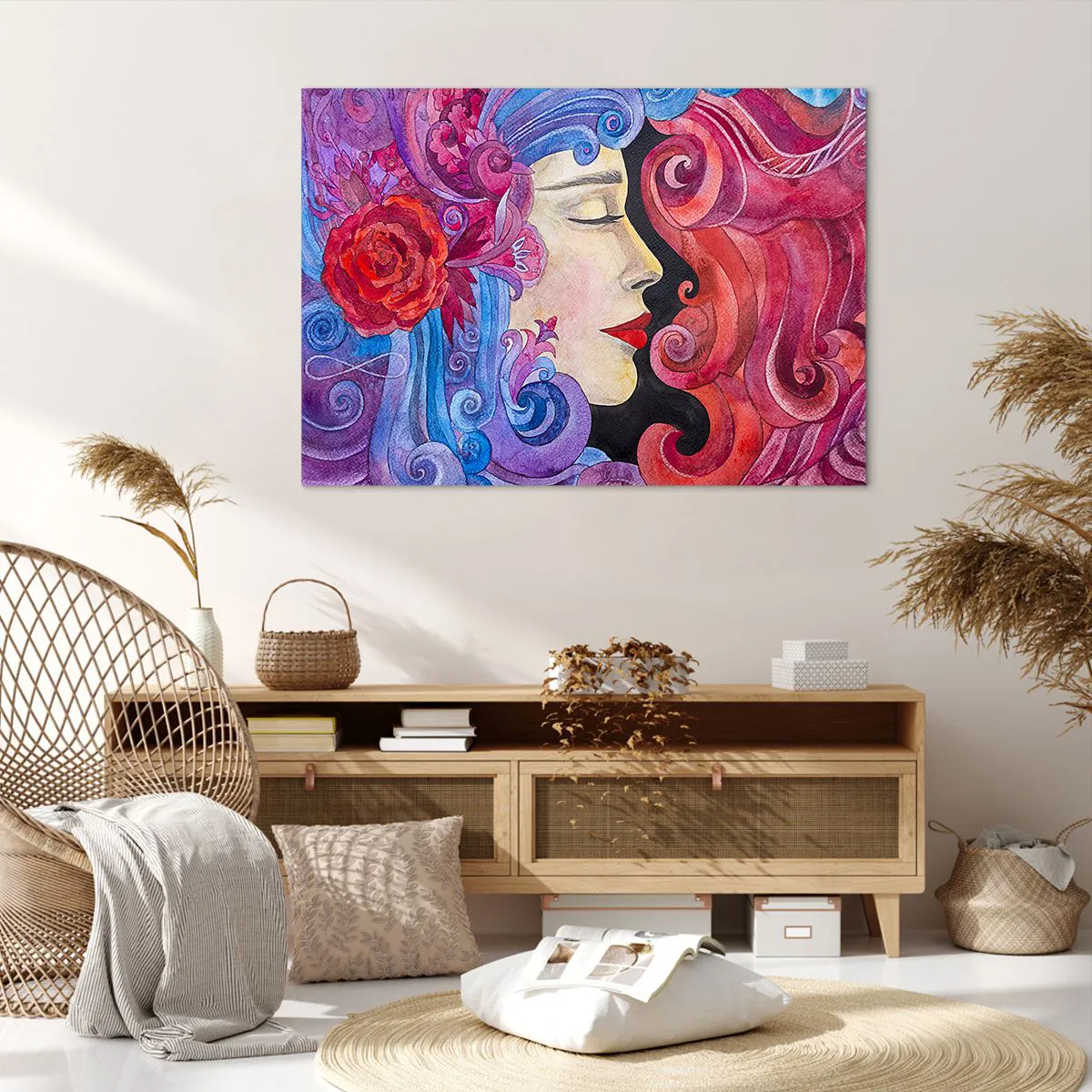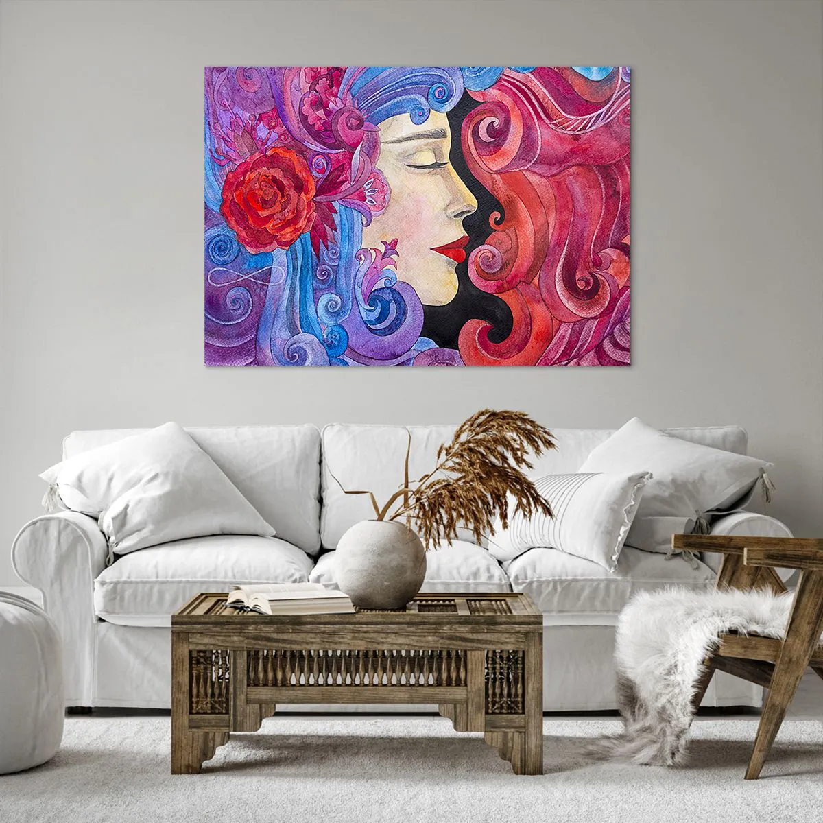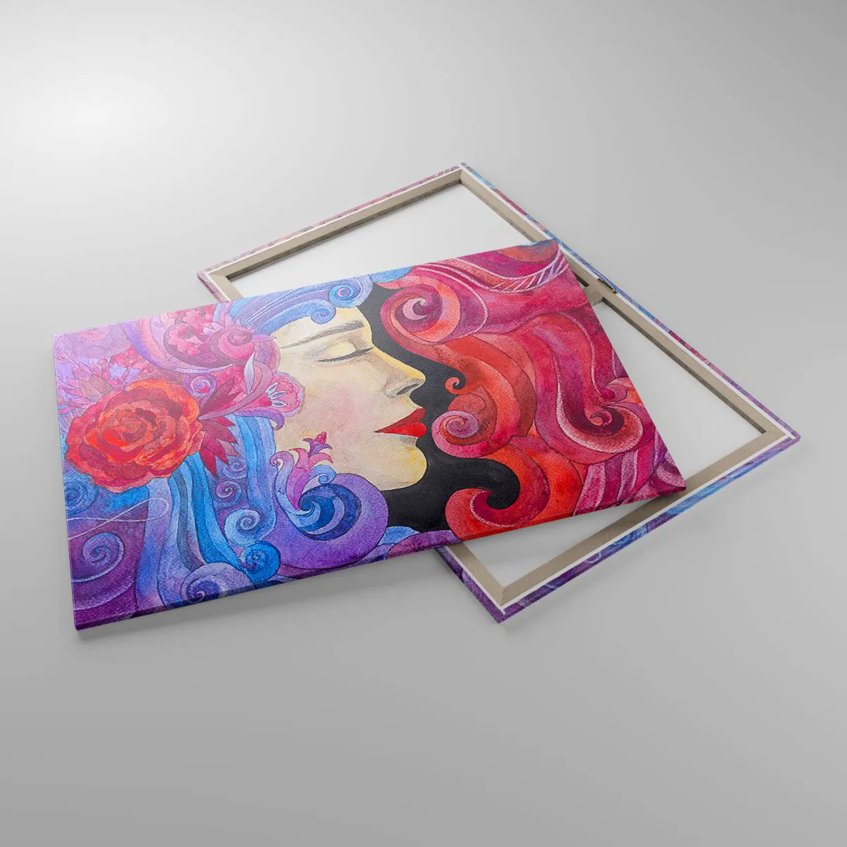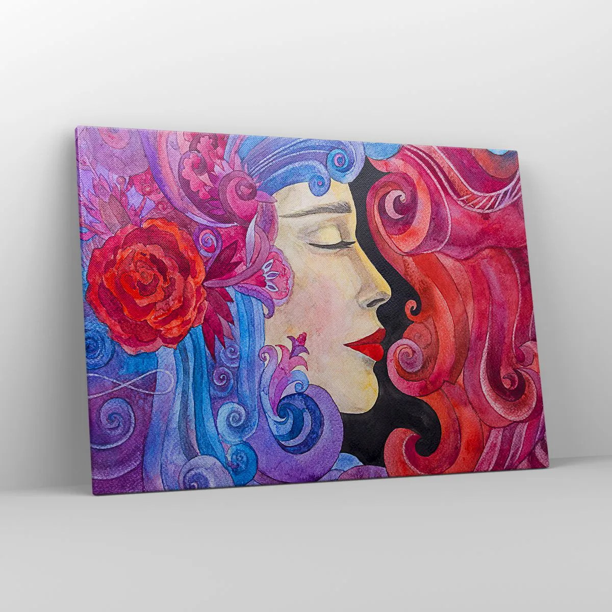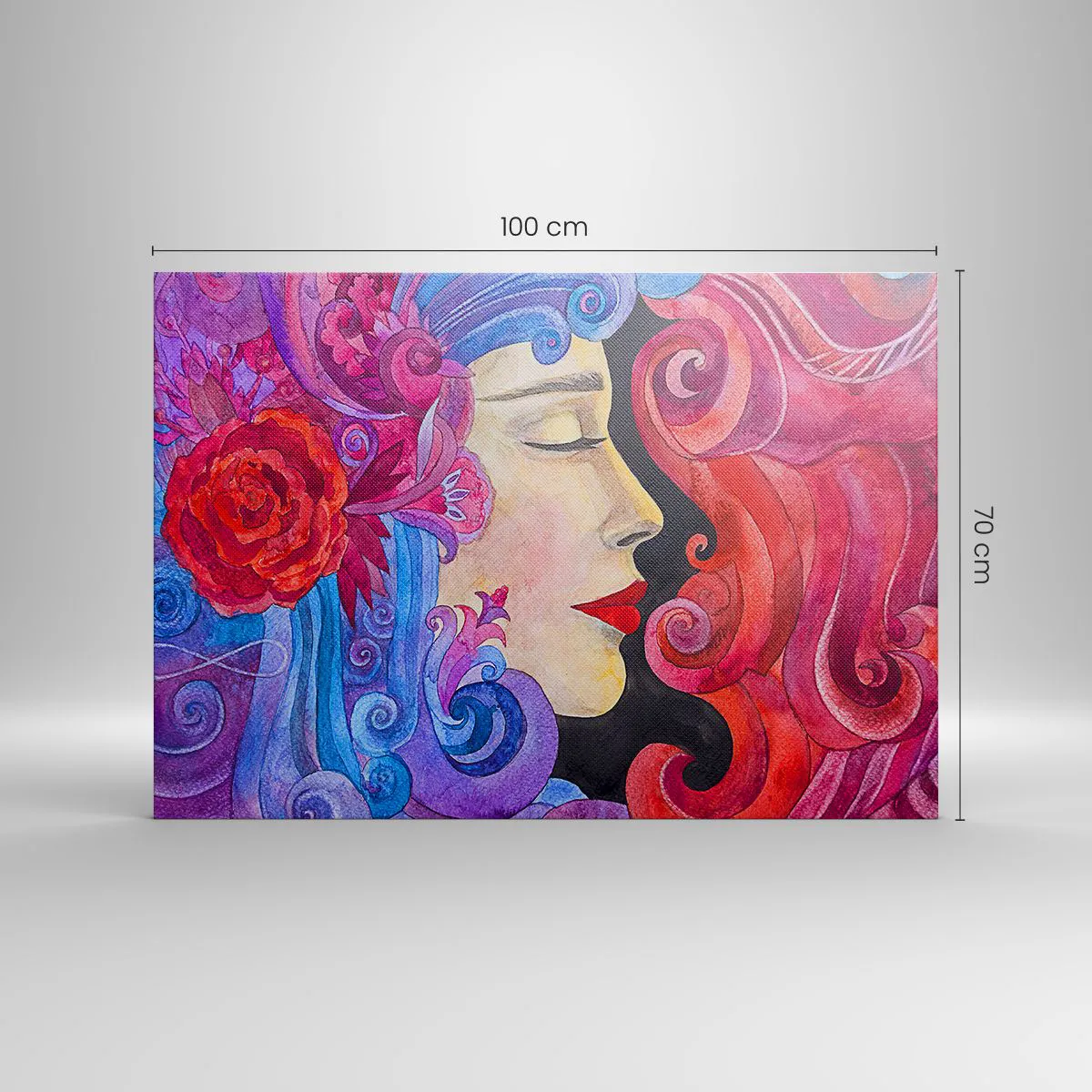 Bild auf Leinwand - Leinwandbild - Buntes Profil einer Frau im künstlerischen Stil - 100x70cm - Der Jugendstil lebt noch - Moderne Wanddekoration für Wohnzimmer und Schlafzimmer ARTTOR