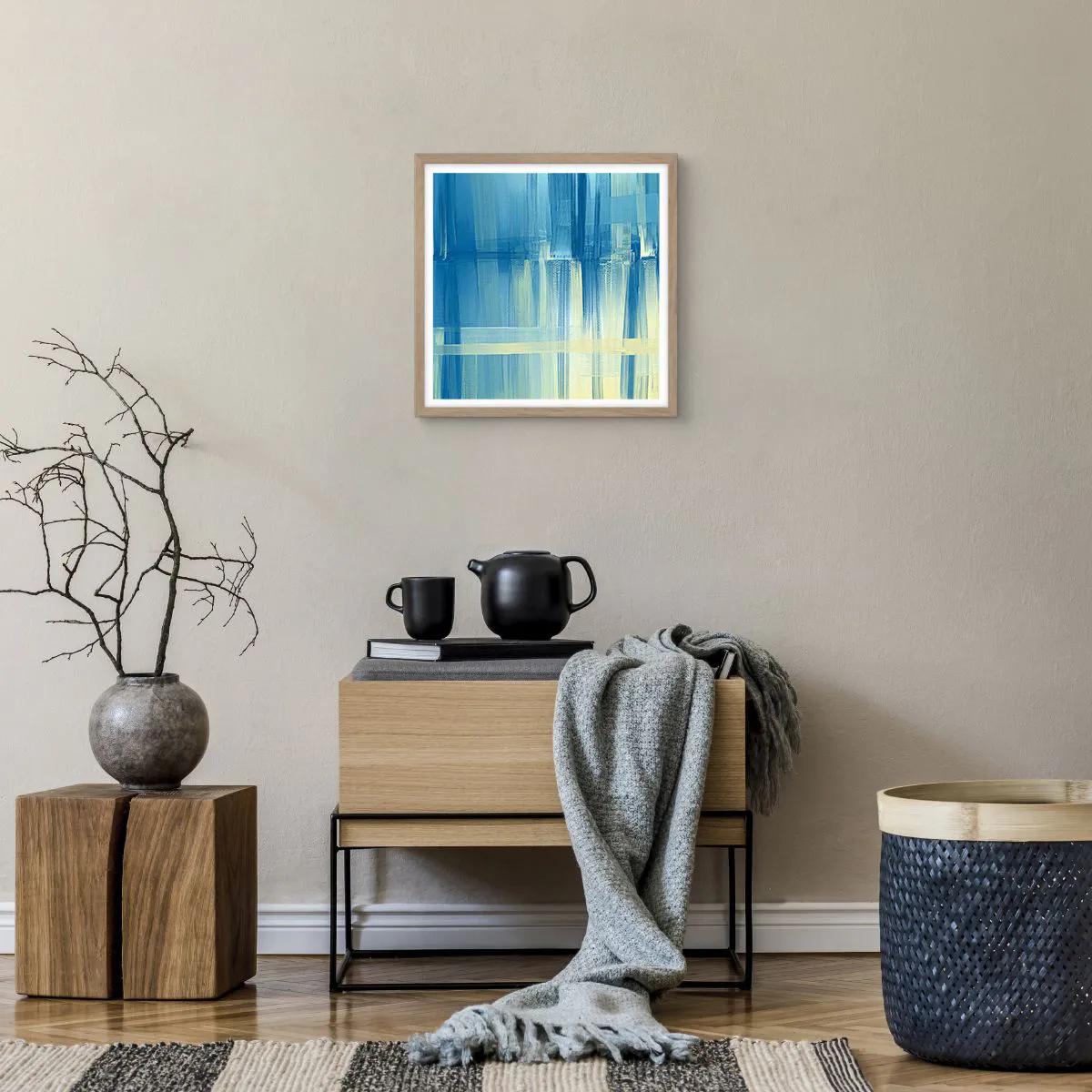 Poster in einem Rahmen aus heller Eiche - Komposition in Türkis - 40x40 cm