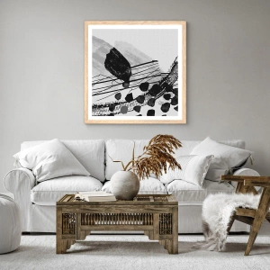 Poster in einem Rahmen aus heller Eiche - Organische Schwarz-Weiß-Abstraktion - 70x50 cm