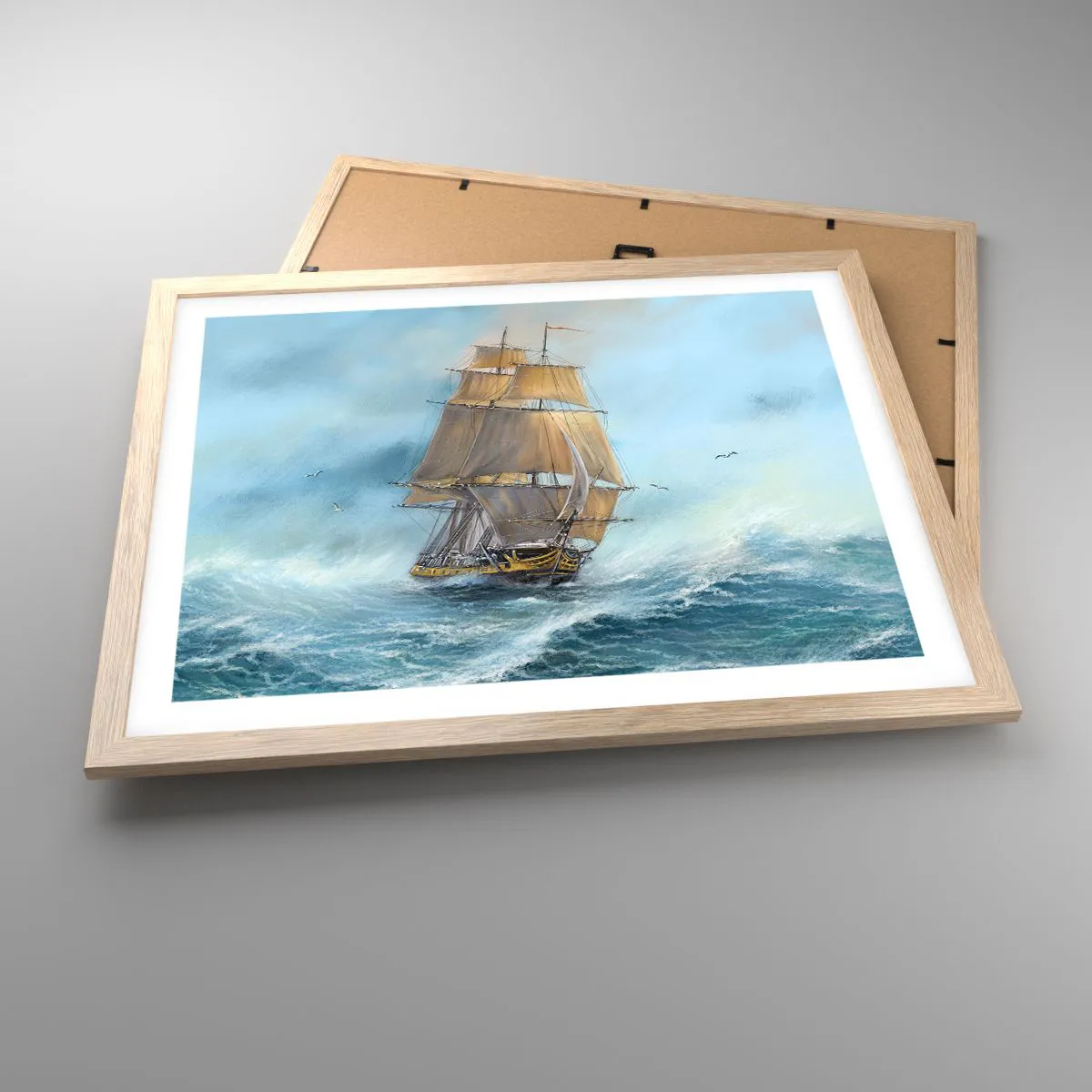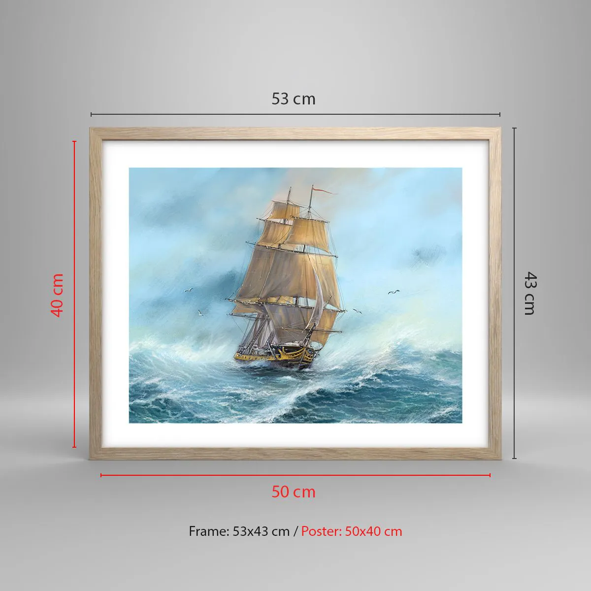 Poster in einem Rahmen aus heller Eiche - Über die Wellen gleiten - 50x40 cm