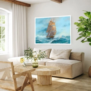 Poster - Ein Segelschiff, das in realistischem Stil durch eine stürmische See segelt - 50x70cm - Über die Wellen gleiten - Moderne Wanddekoration für Wohnzimmer und Schlafzimmer ARTTOR