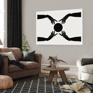 Poster - Schwarze Hände in einer symmetrischen Komposition mit einer Kugel - 100x70cm - Geheimes Zeichen - Moderne Wanddekoration für Wohnzimmer und Schlafzimmer ARTTOR