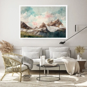 Poster - Malerische Berge mit pastellfarbenem Himmel - 100x70cm - Felsklingen - Moderne Wanddekoration für Wohnzimmer und Schlafzimmer ARTTOR