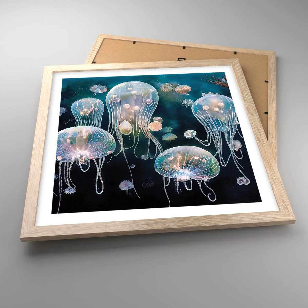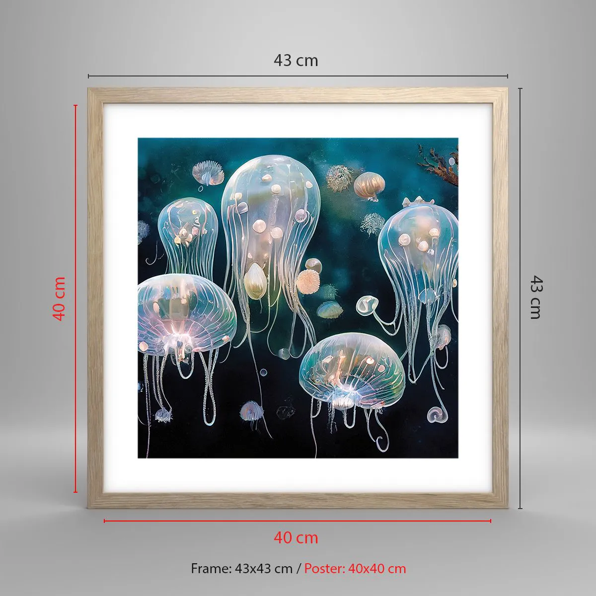 Poster in einem Rahmen aus heller Eiche - Unterwasserball - 40x40 cm
