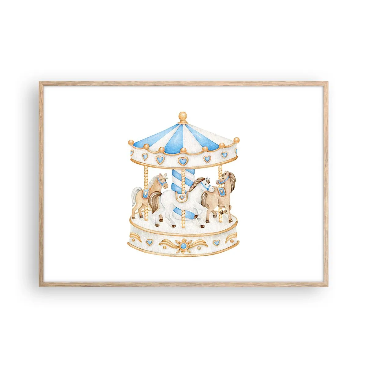 • Pferde, Karussell, Kinder, Für Kinder, Pastell, Vintage und Retro, Tiere, Für das Kinderzimmer Weiß, Braun, Blau, Horizontal