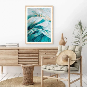 Poster in einem Rahmen aus heller Eiche - Blaue Abstraktion mit goldenem Motiv - 40x50 cm