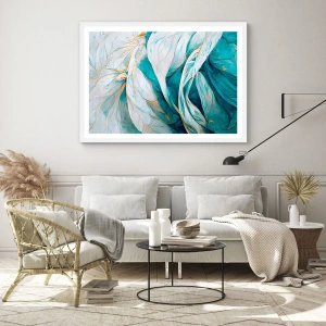 Poster in einem weißen Rahmen - Blaue Abstraktion mit goldenem Motiv - 100x70 cm