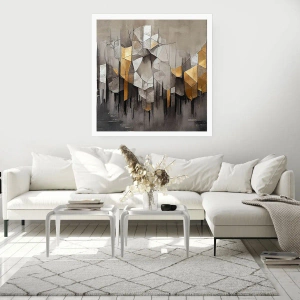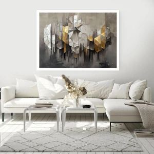 Poster - Geometrische Abstraktion in Grau- und Goldtönen - 50x70cm - Komposition aus Eis und Licht - Moderne Wanddekoration für Wohnzimmer und Schlafzimmer ARTTOR