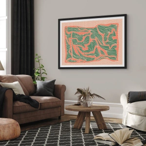 Poster in einem schwarzem Rahmen - Kampf zwischen Korallen und Grün - 30x40 cm