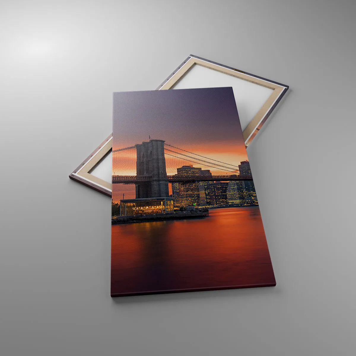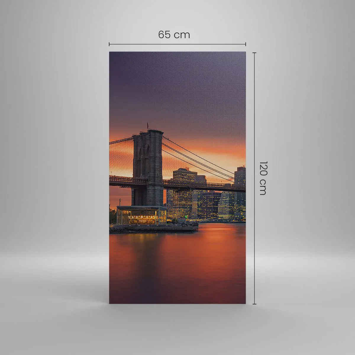 Die Leinwand wird über den Rahmen gespannt. Die Seiten und Kanten werden gedruckt, um das Bild fortzusetzen. Das Bild ist fertig zum Aufhängen an der Wand. Jedes Produkt hat einen am Rahmen befestigten Anhänger und ein Montageset (Schraube + Stift).