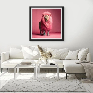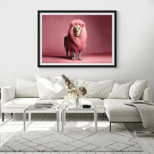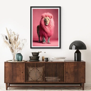 Poster in einem schwarzem Rahmen - Ein künstlerisch gestalteter Löwe mit rosa Mähne auf rosa Hintergrund - 70x50cm - Und du hast keine Angst mehr - Moderne Wanddekoration für Wohnzimmer und Schlafzimmer ARTTOR