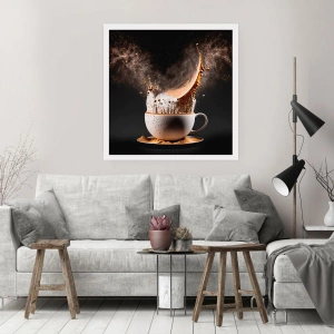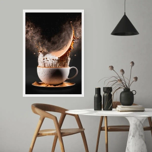 Poster - Eine Tasse Kaffee mit einer dynamischen Flüssigkeitsexplosion auf schwarzem Hintergrund. - 100x70cm - Geschmacksexplosion - Moderne Wanddekoration für Wohnzimmer und Schlafzimmer ARTTOR