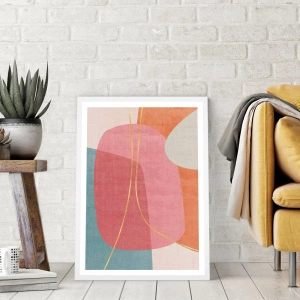 Poster in einem weißen Rahmen - Pastellkomposition mit Goldfaden - 70x50 cm