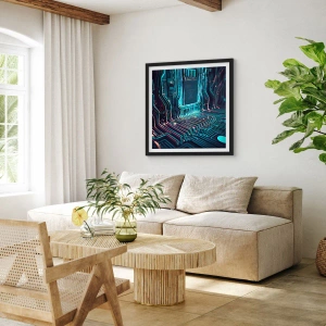Poster in einem schwarzem Rahmen - Technologische Leiterplatte mit beleuchteten Spuren - 70x50cm - Ich denke nur… - Moderne Wanddekoration für Wohnzimmer und Schlafzimmer ARTTOR