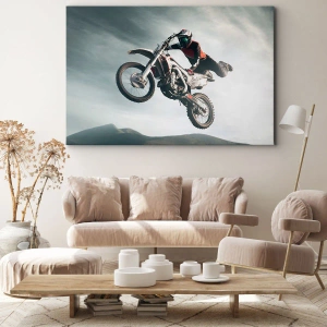 Bild auf Leinwand - Leinwandbild - Motorradfahrer in der Luft bei einem Sprung - 70x50cm - Kein Spaß ohne Risiko - Moderne Wanddekoration für Wohnzimmer und Schlafzimmer ARTTOR