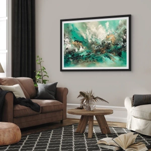 Poster in einem schwarzem Rahmen - Abstrakte Komposition in Grün- und Goldtönen - 50x70cm - Smaragdgrüne und schwarze Brandung - Moderne Wanddekoration für Wohnzimmer und Schlafzimmer ARTTOR