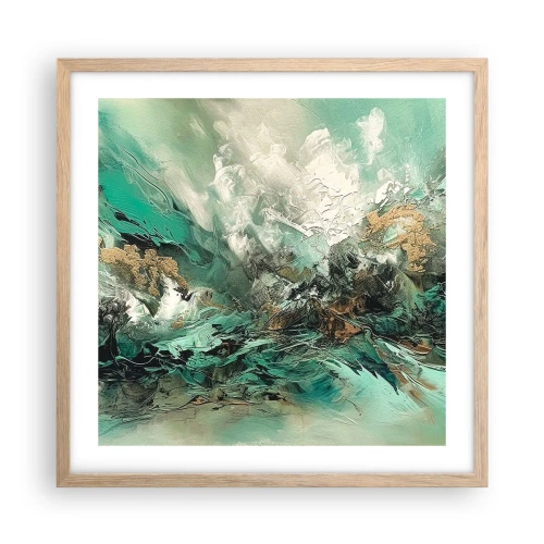 Poster in einem Rahmen aus heller Eiche - Smaragdgrüne und schwarze Brandung - 50x50 cm