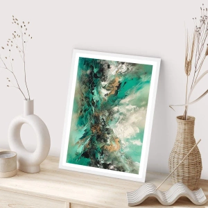 Poster in einem weißen Rahmen - Smaragdgrüne und schwarze Brandung - 61x91 cm