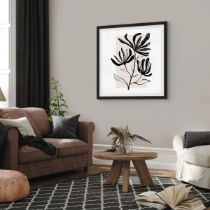 Poster in einem schwarzem Rahmen - Minimalistisches schwarz-weißes Blumenmotiv - 70x50cm - Skizze für das Herbarium - Moderne Wanddekoration für Wohnzimmer und Schlafzimmer ARTTOR