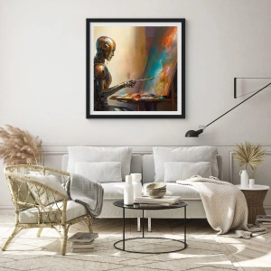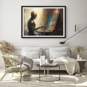 Poster in einem schwarzem Rahmen - Robotermaler an einer Staffelei im futuristischen Stil - 50x70cm - Die Kunst der Zukunft - Moderne Wanddekoration für Wohnzimmer und Schlafzimmer ARTTOR