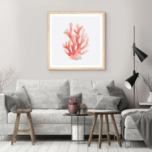 Poster in einem Rahmen aus heller Eiche - Korallenfarbene Koralle - 30x40 cm