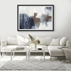 Poster in einem schwarzem Rahmen - Abstrakte Formen in Blau- und Brauntönen - 70x50cm - Blaue und braune Formen - Moderne Wanddekoration für Wohnzimmer und Schlafzimmer ARTTOR