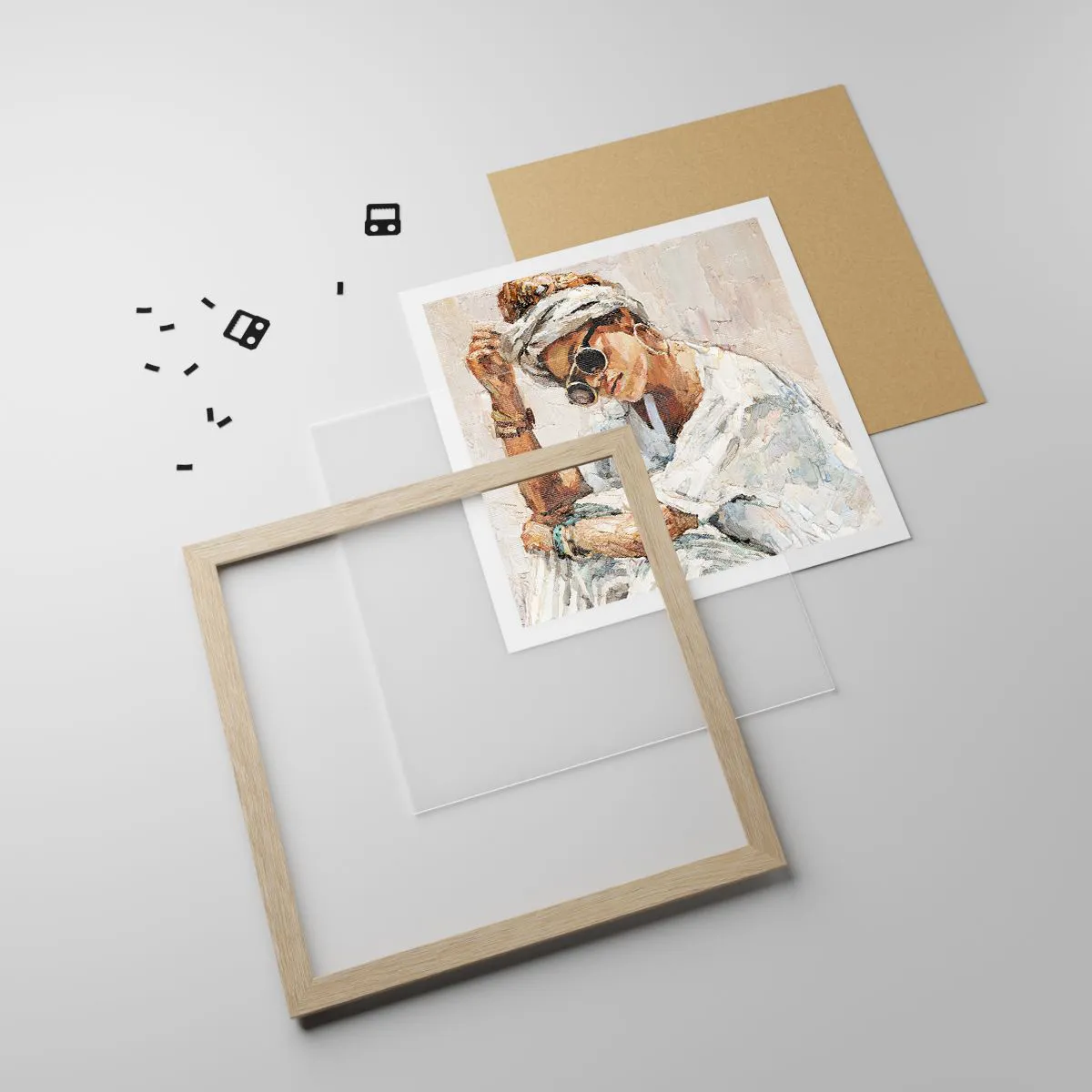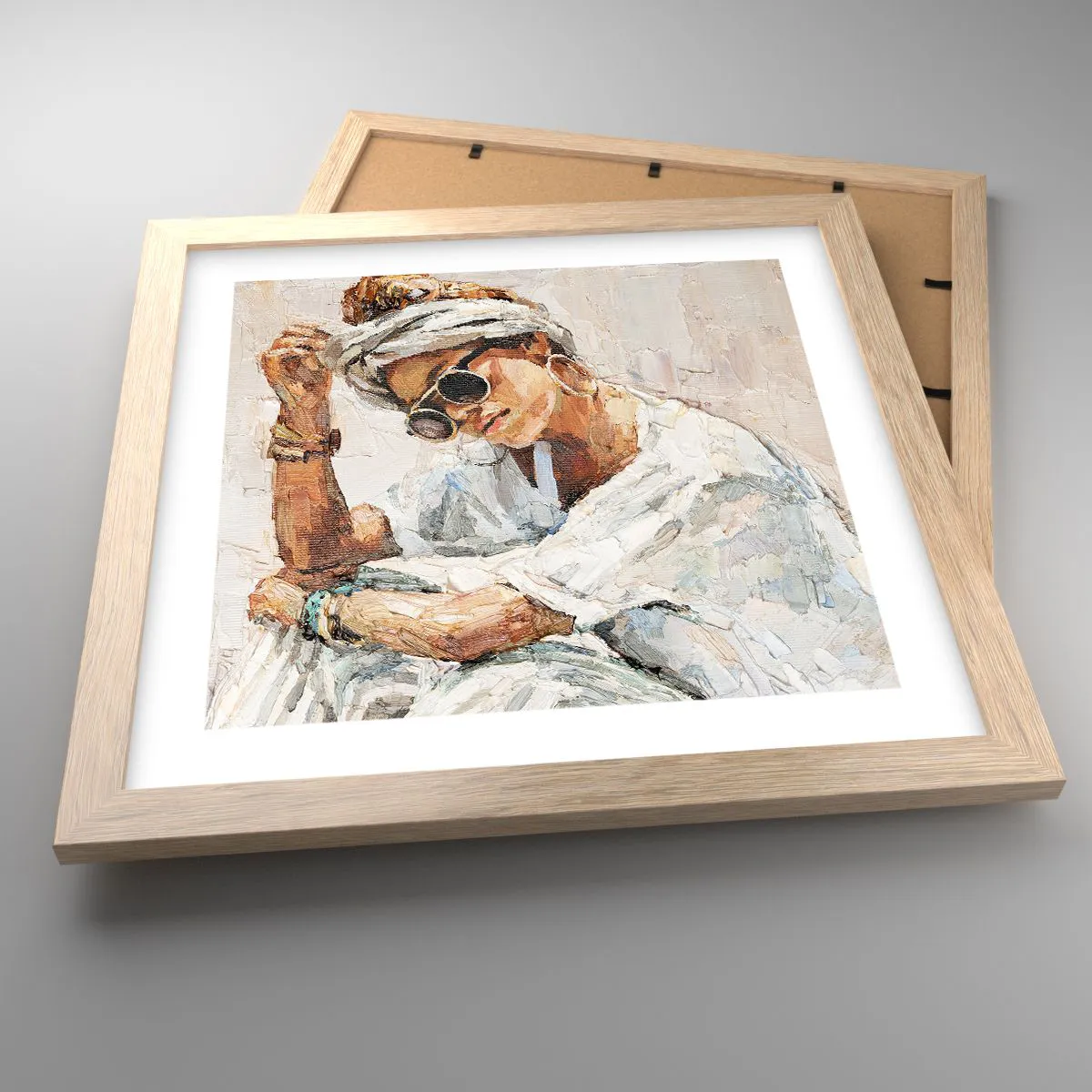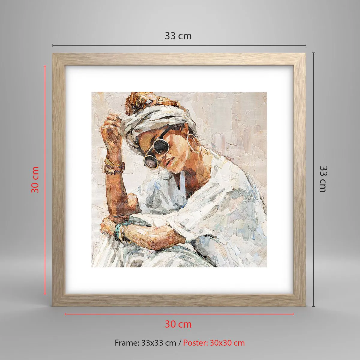 Poster in einem Rahmen aus heller Eiche - Porträt in voller Sonne - 30x30 cm
