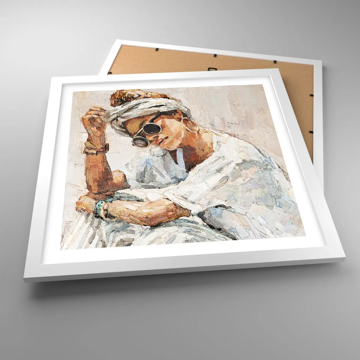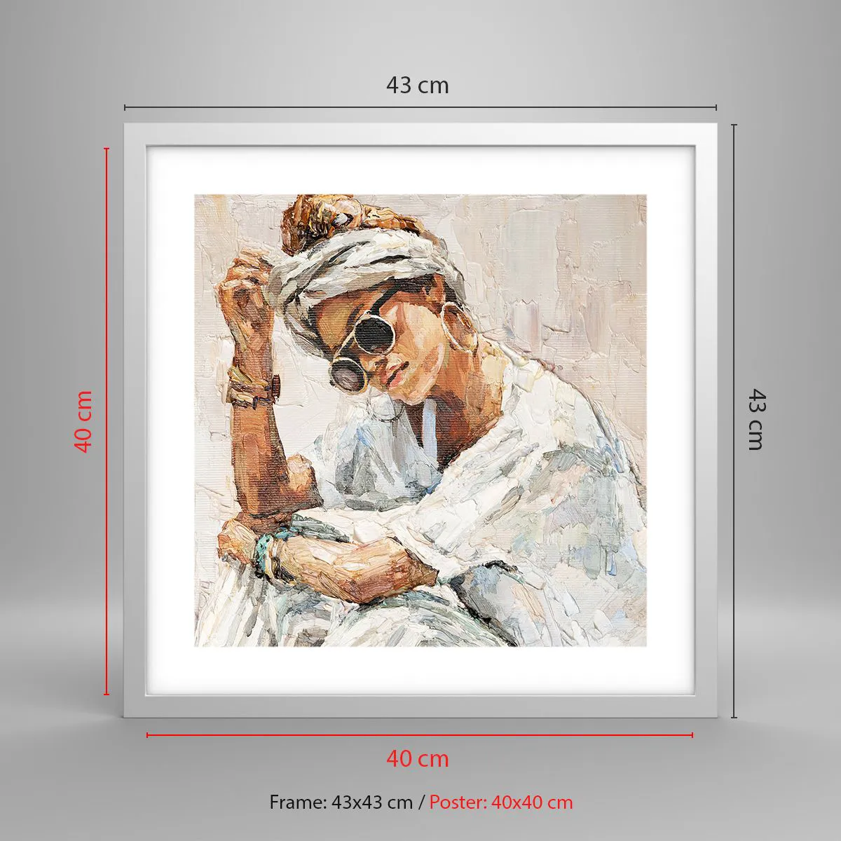 Poster in einem weißen Rahmen - Porträt in voller Sonne - 40x40 cm