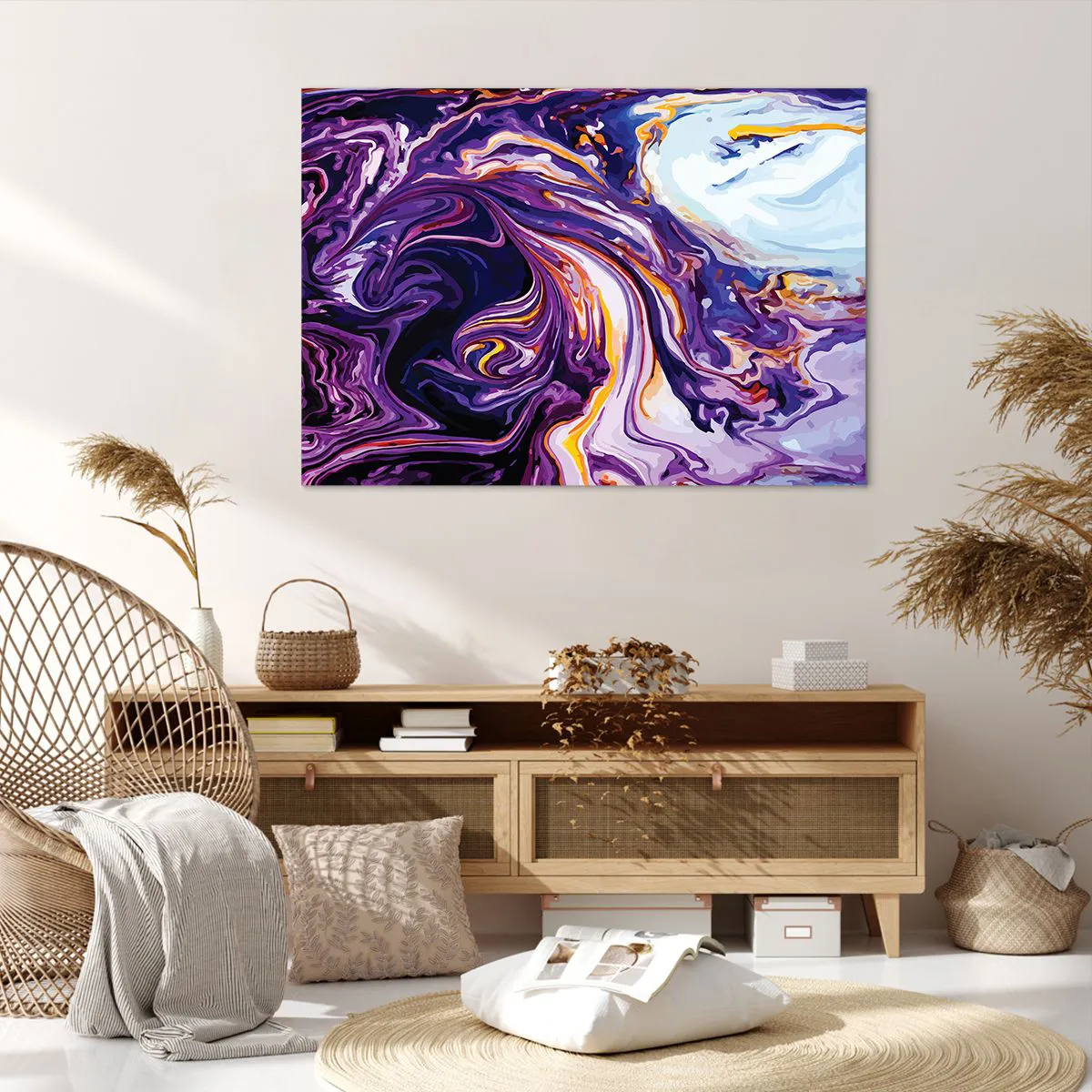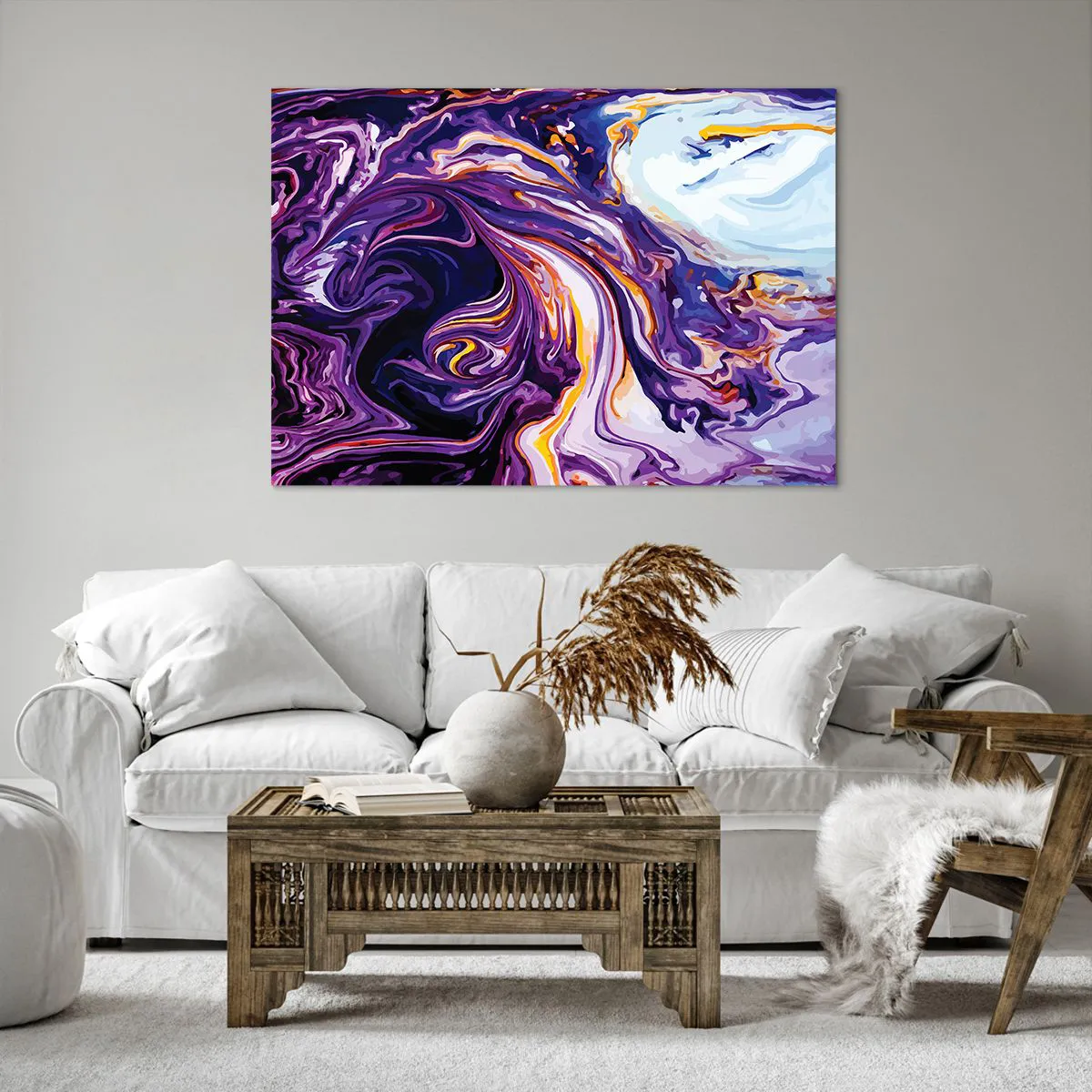 Bild auf Leinwand - Leinwandbild - Ein dynamisches abstraktes Muster in Lila- und Gelbtönen. - 100x70cm - Die Falte ist lila geworden - Moderne Wanddekoration für Wohnzimmer und Schlafzimmer ARTTOR