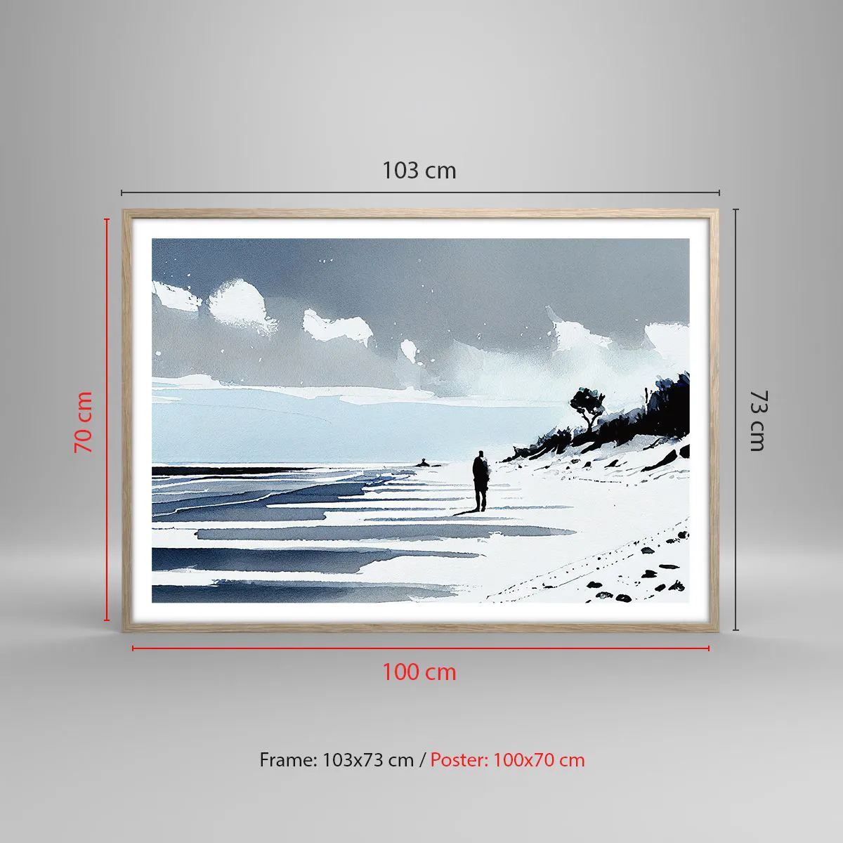 Poster in einem Rahmen aus heller Eiche - Allein sein - 100x70 cm