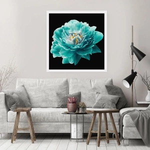 Poster - Türkisfarbene Blume mit einer Biene auf schwarzem Hintergrund - 50x70cm - Blaue und goldene Blütenblätter - Moderne Wanddekoration für Wohnzimmer und Schlafzimmer ARTTOR