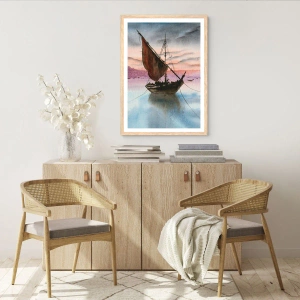 Poster in einem Rahmen aus heller Eiche - Abend am Hafen - 30x40 cm