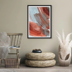Poster in einem schwarzem Rahmen - Abstrakte Pinselstriche in Kupfer- und Grautönen - 70x50cm - Herbst und windige Abstraktion - Moderne Wanddekoration für Wohnzimmer und Schlafzimmer ARTTOR