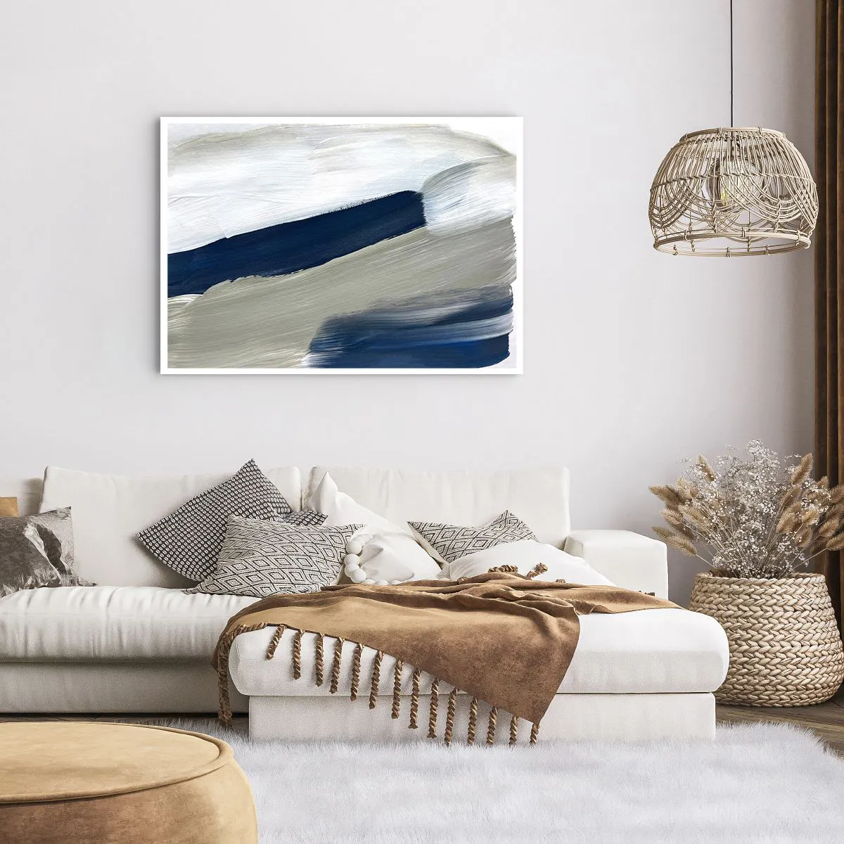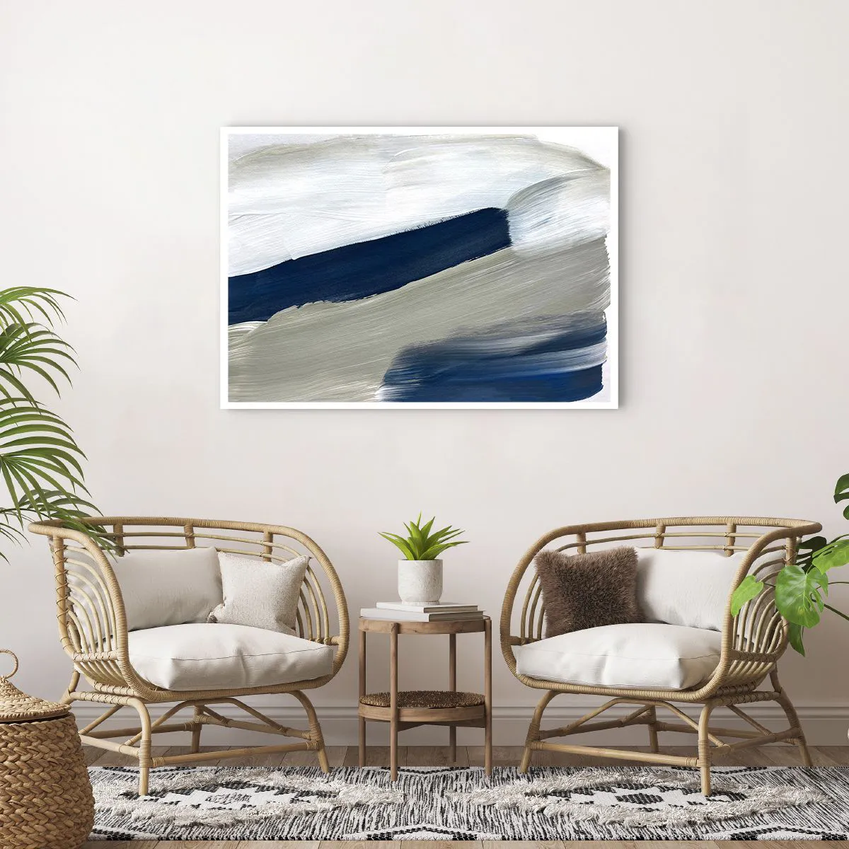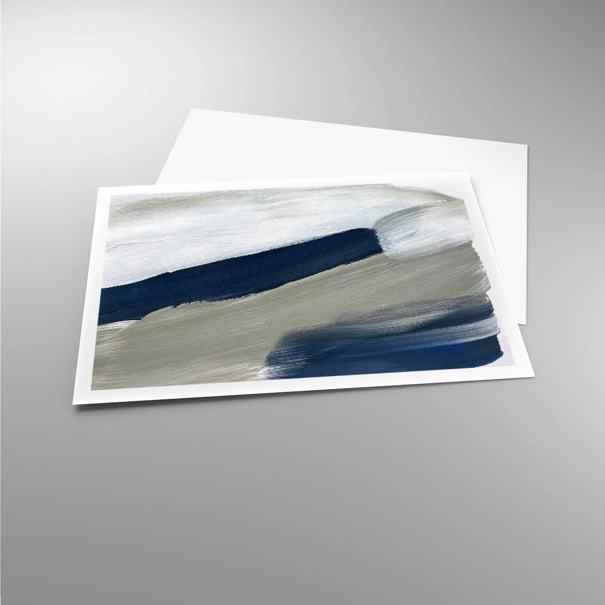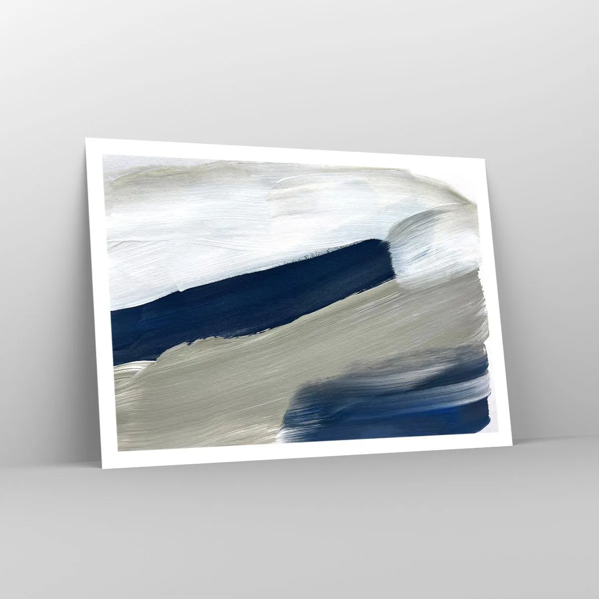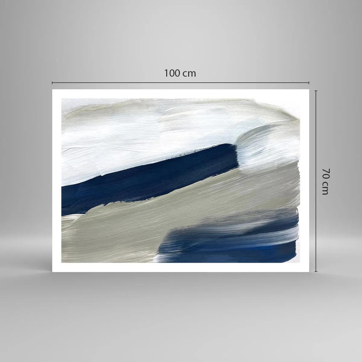 Poster - Abstrakte Pinselstriche in Blau- und Grautönen - 100x70cm - Begegnung mit dem Weißsein - Moderne Wanddekoration für Wohnzimmer und Schlafzimmer ARTTOR