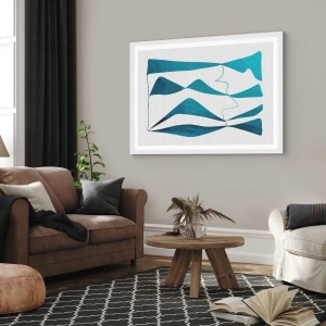 Poster in einem weißen Rahmen - Abstraktion: türkisfarbene Verbindung - 100x70 cm