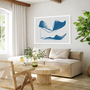 Poster - Abstrakte Formen in Blautönen auf hellem Hintergrund - 50x70cm - Geflügelte Abstraktion - Moderne Wanddekoration für Wohnzimmer und Schlafzimmer ARTTOR