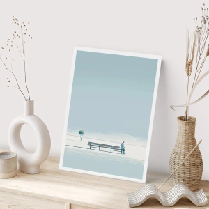 Poster - Eine Person, die in einer minimalistischen, friedlichen Landschaft auf einer Bank sitzt. - 50x70cm - Ja, ich warte. - Moderne Wanddekoration für Wohnzimmer und Schlafzimmer ARTTOR