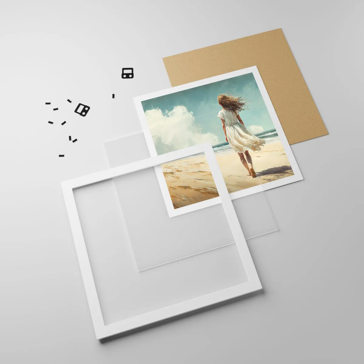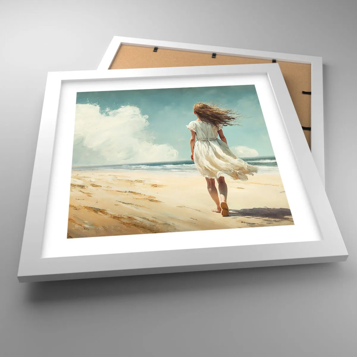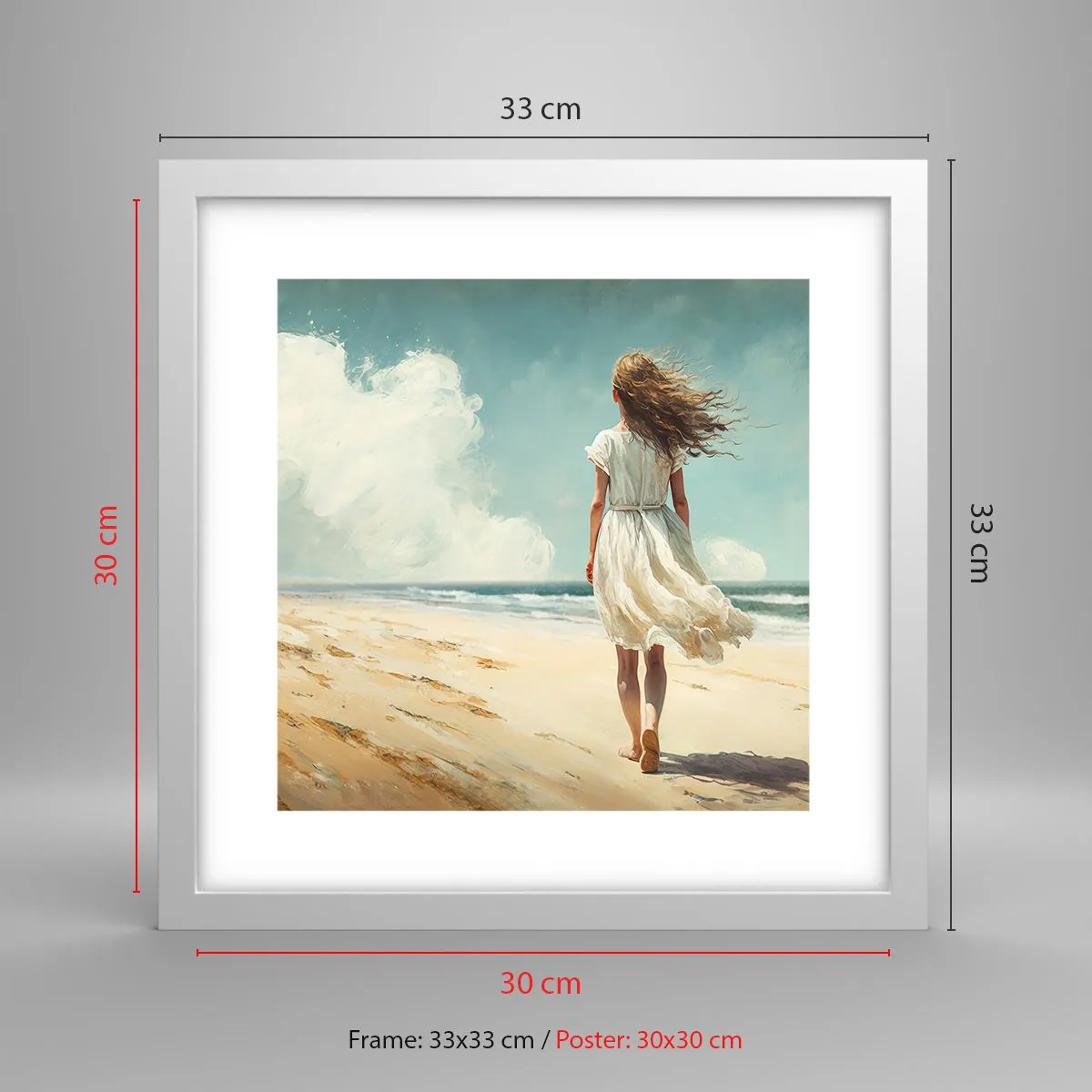 Poster in einem weißen Rahmen - Der Sonne und dem Wind begegnen - 30x30 cm