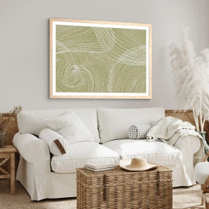 Poster in einem Rahmen aus heller Eiche - Komplizierte Abstraktion in Weiß - 100x70 cm