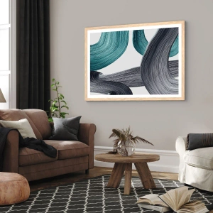 Poster in einem Rahmen aus heller Eiche - Smaragdgrüne und schwarze Pfade - 100x70 cm