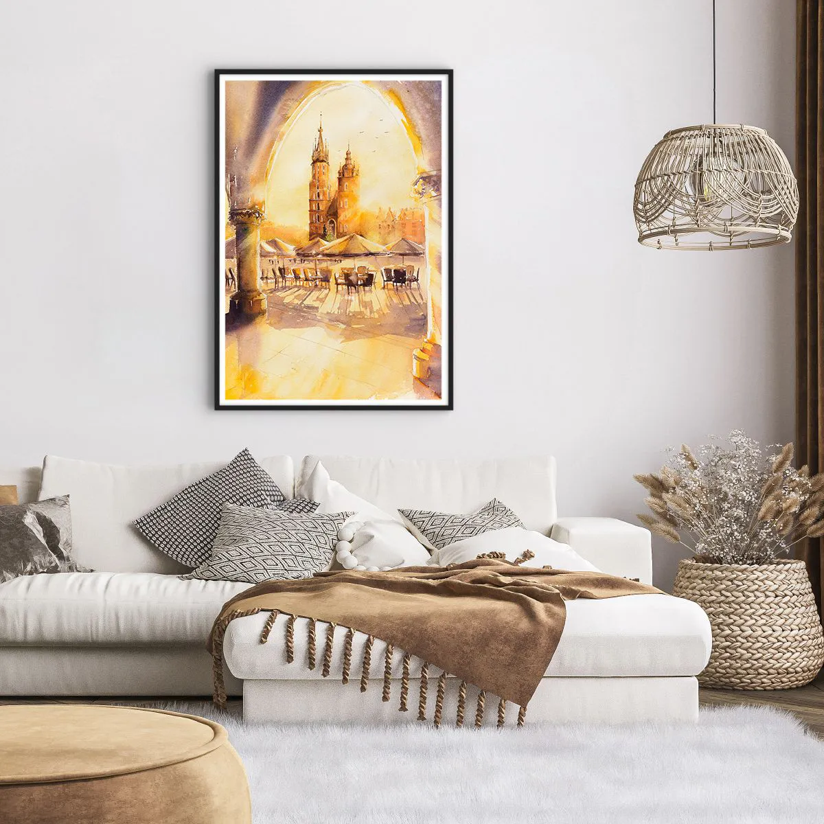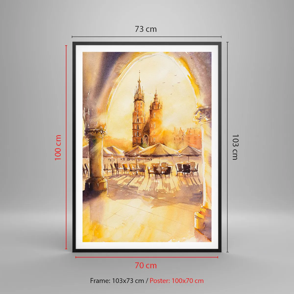 Poster in einem schwarzem Rahmen - Östlich über dem Krakauer Marktplatz - 70x100 cm