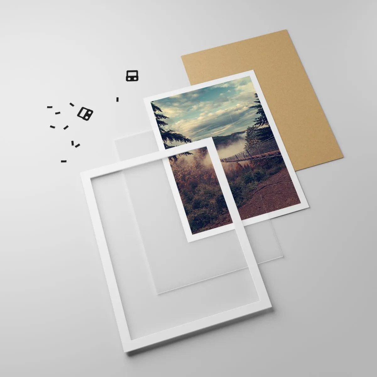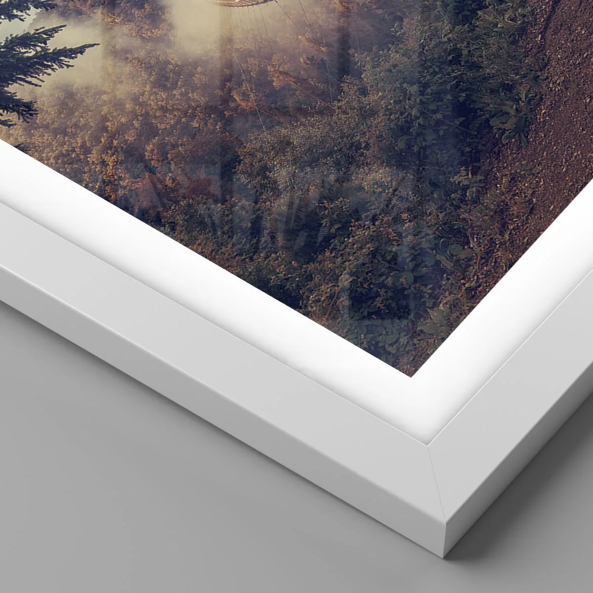Poster in einem weißen Rahmen - Über dem Herbstwald - 30x40 cm