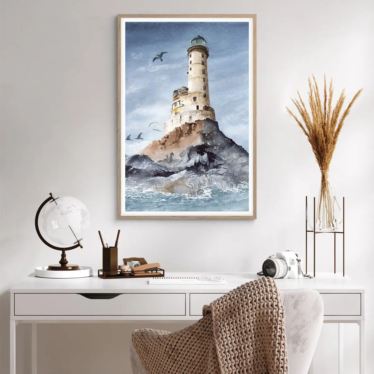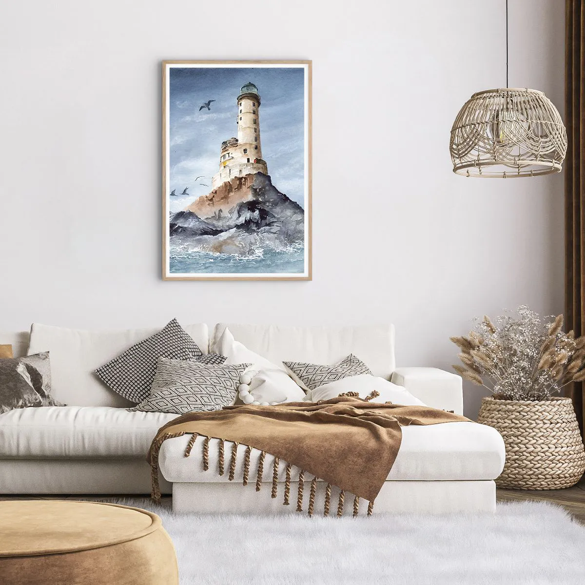 • Leuchtturm, Meer, Möwe, Nautik, Reisen, Kunst, Für das Büro, für das Arbeitszimmer, für das Esszimmer, für das Badezimmer, für den Flur, für das Wohnzimmer, für das Schlafzimmer, Braun, Blau, Grau, Vertikal