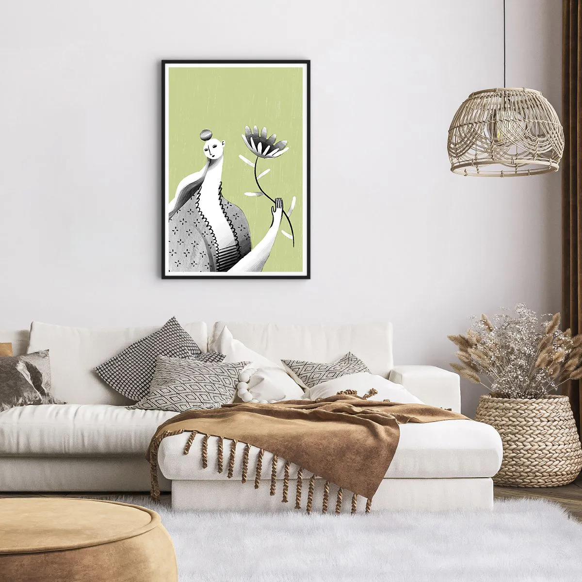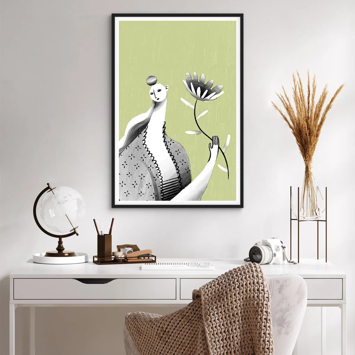 Poster in einem schwarzem Rahmen - Modernistisches Porträt – eine Blume haltend - 61x91 cm