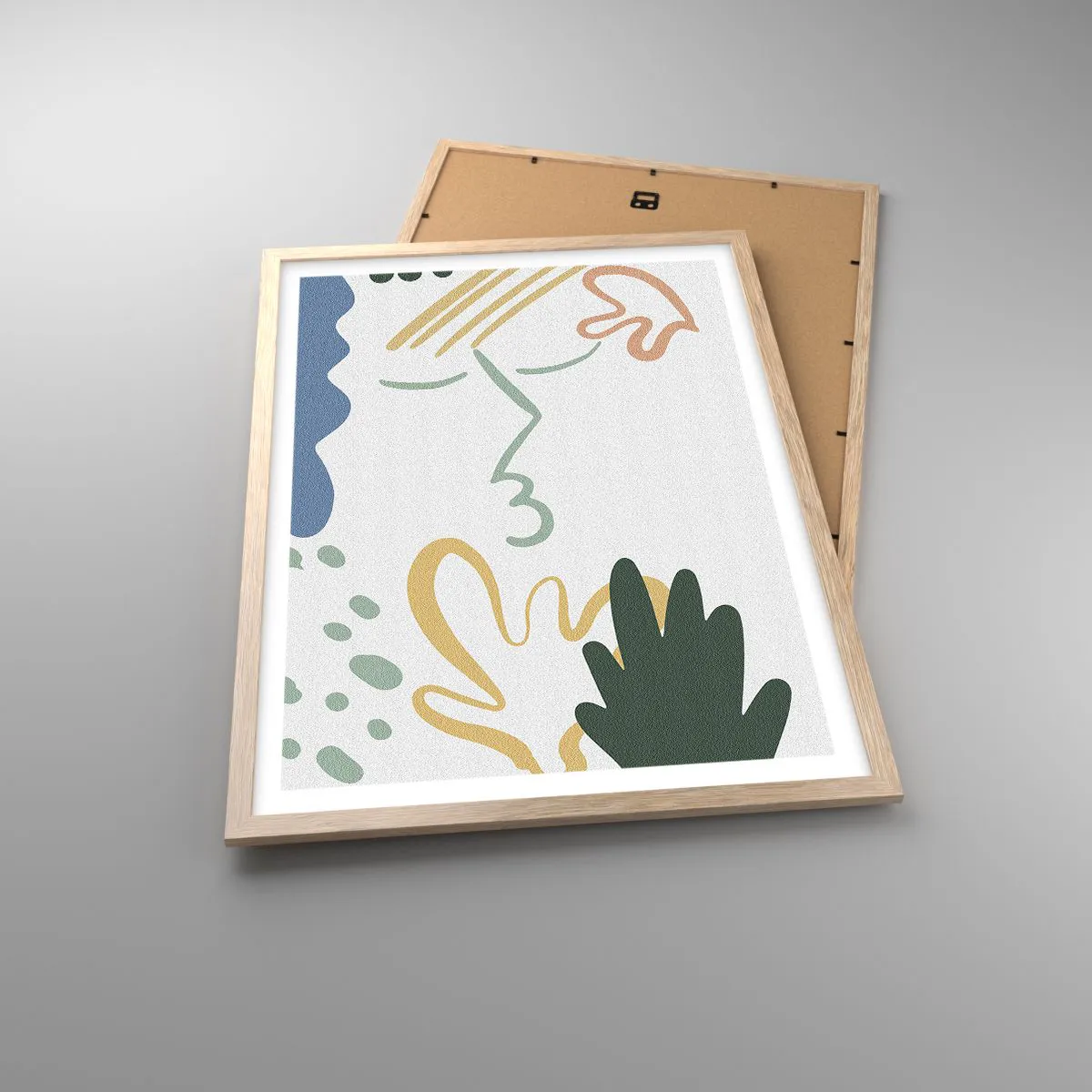 Poster in einem Rahmen aus heller Eiche - Blumenkuss - 50x70 cm