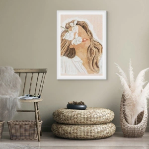 Poster in einem weißen Rahmen - Unter den Blumen in Verzückung - 61x91 cm