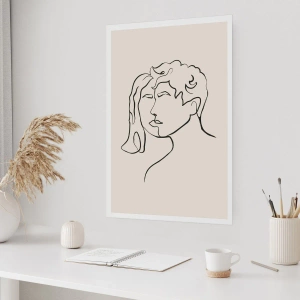 Poster - Eine minimalistische Skizze der Gesichter eines Paares auf beigem Hintergrund. - 50x70cm - Und es wurde Einheit - Moderne Wanddekoration für Wohnzimmer und Schlafzimmer ARTTOR