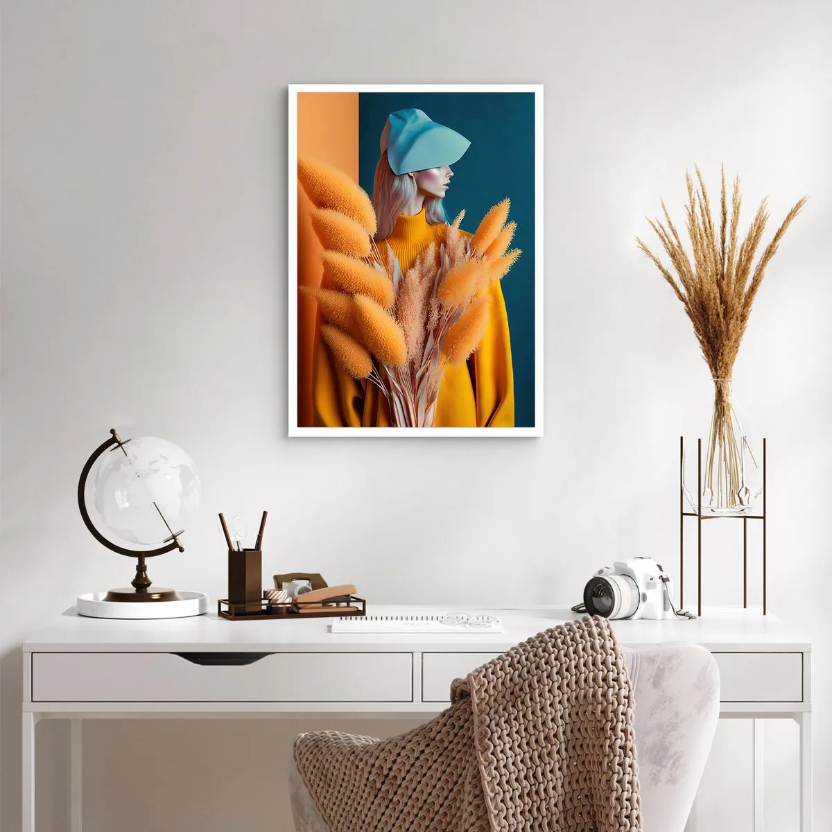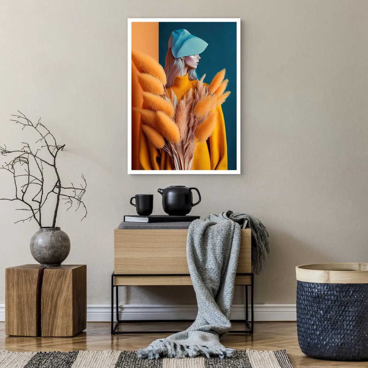 Poster - Ein modernes Frauenporträt in warmen Farben - 50x70cm - Flauschiges Porträt - Moderne Wanddekoration für Wohnzimmer und Schlafzimmer ARTTOR