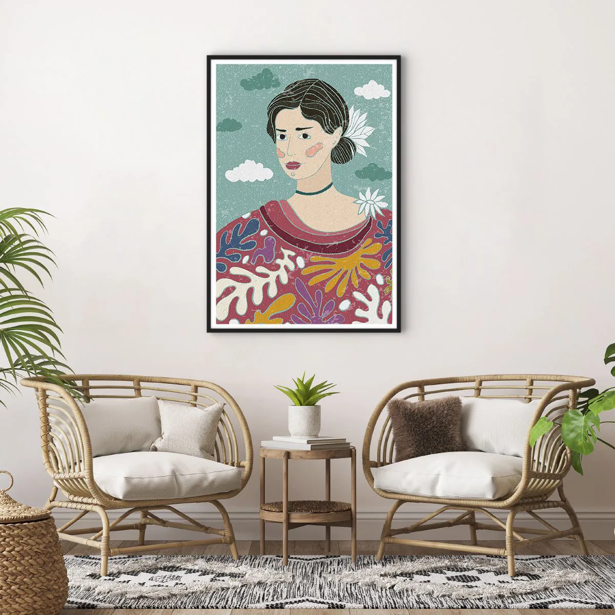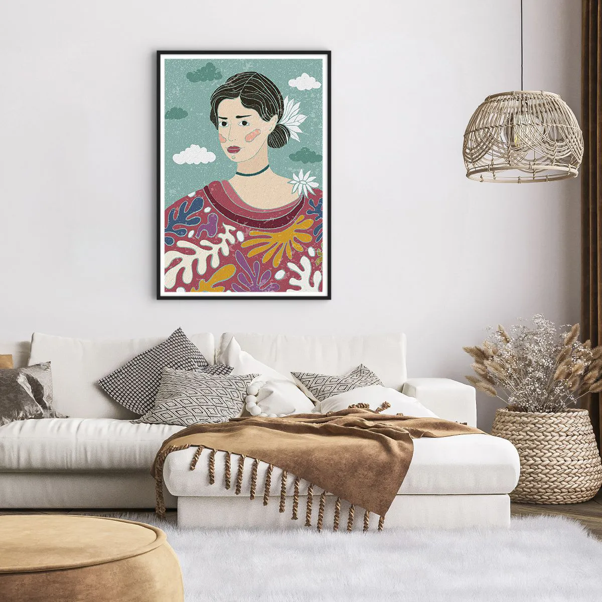 Poster in einem schwarzem Rahmen - Mit Melancholie im Blick - 70x100 cm